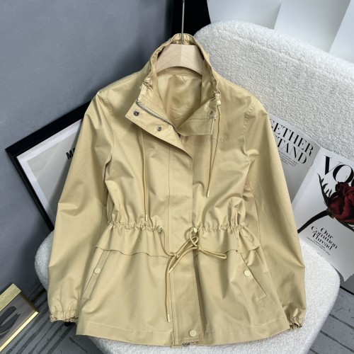 하이넥 재킷, 엄선된 고급 개버딘 원단, 자수 로고 문자, 히든 스냅 및 지퍼, 허리 조임끈 조절 가능
